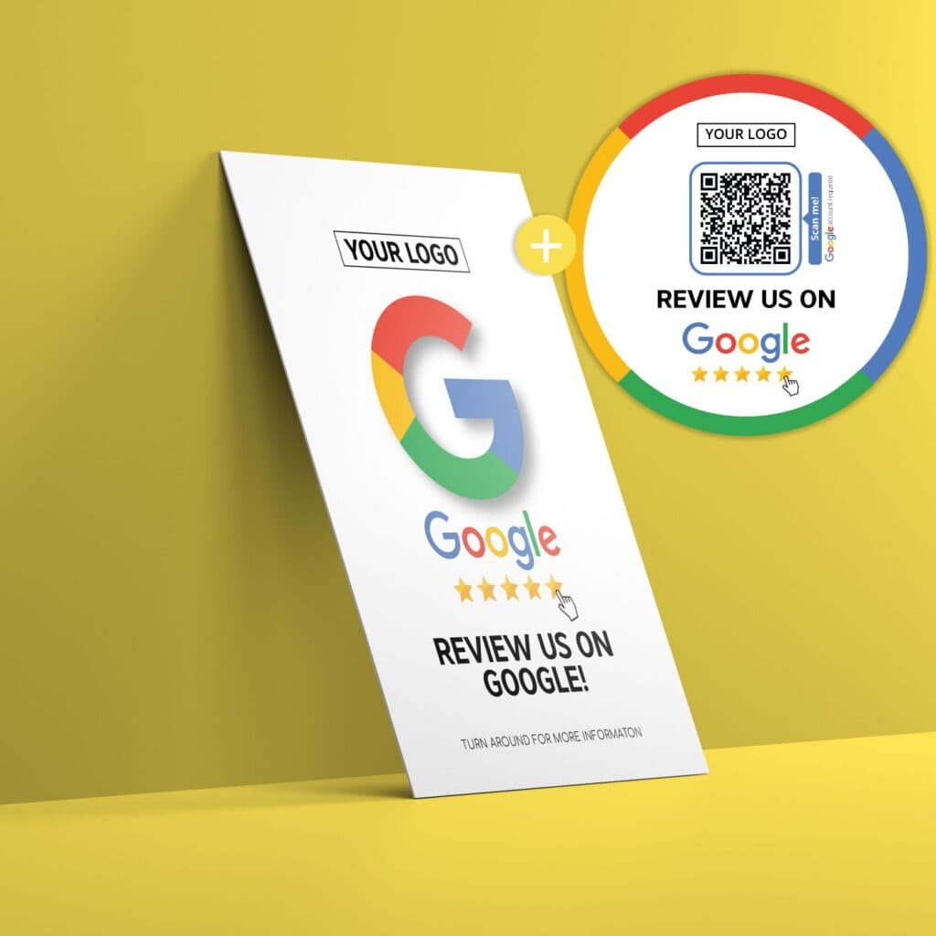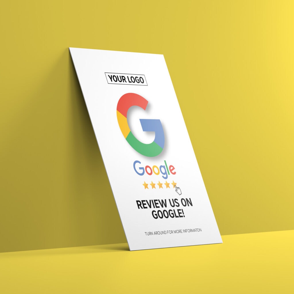Choose a stand, sticker, business card, or review card — based on where customers interact with you.