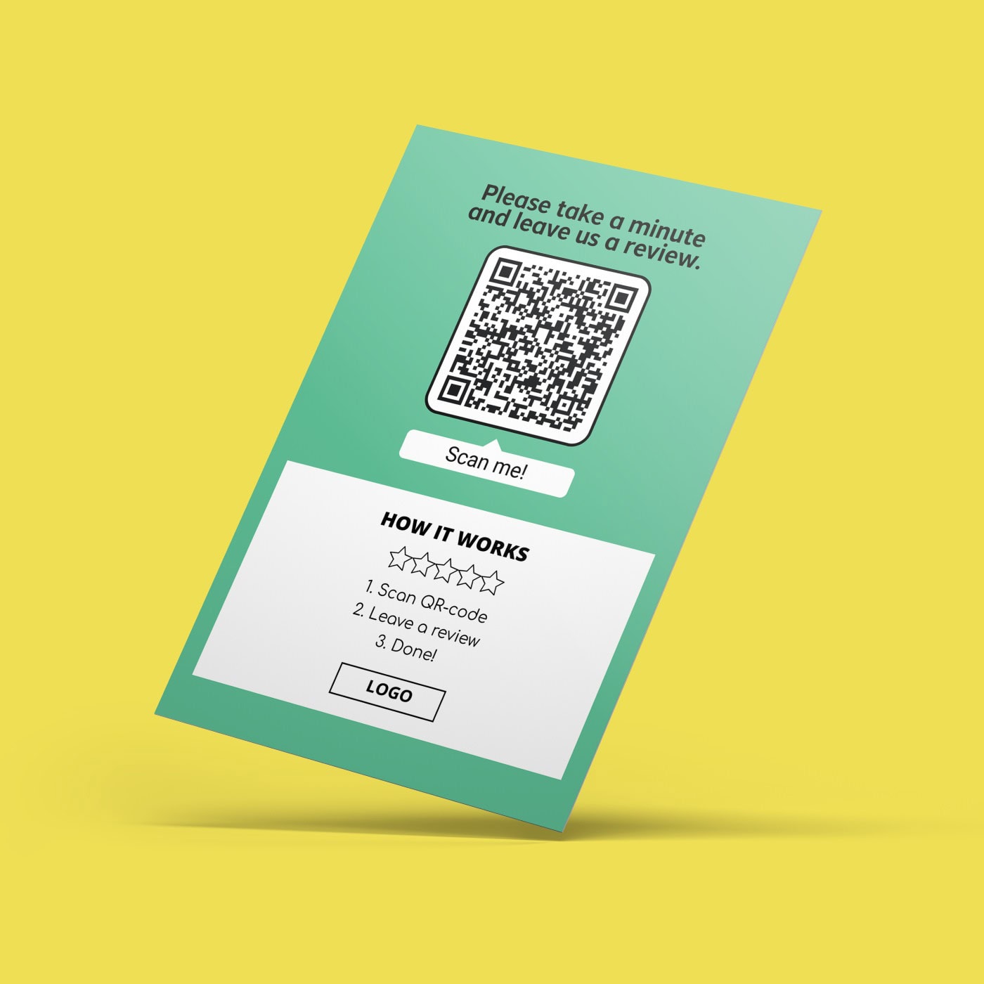Customers simply scan the QR code with their camera — or tap their phone (NFC products).