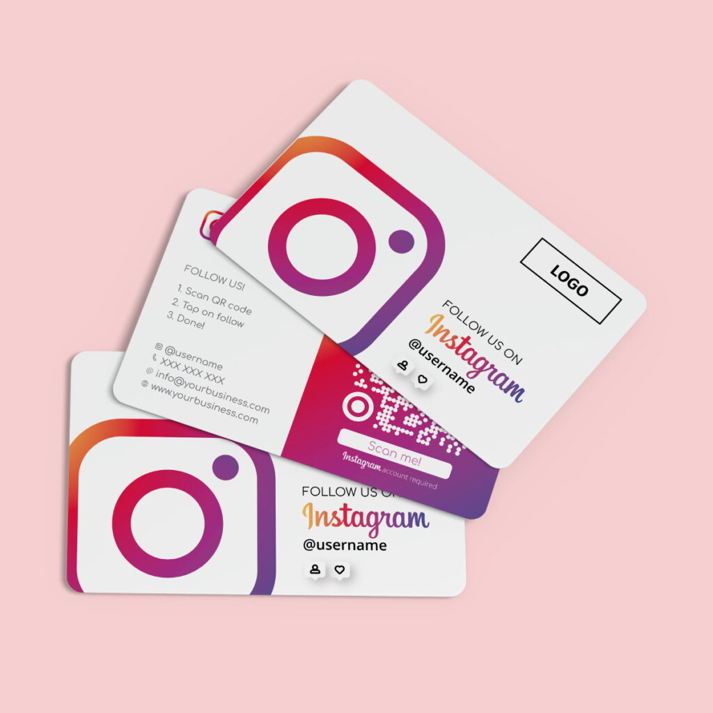 Customers tap (NFC) or scan (QR) and land directly on your Instagram profile — ready to follow. No searching. No explaining.