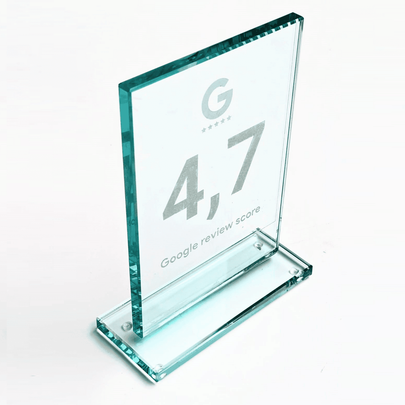 Ottieni piรน fiducia dai tuoi clienti, ospiti e pazienti con i nostri trofei/display di fiducia con il tuo punteggio di valutazione.