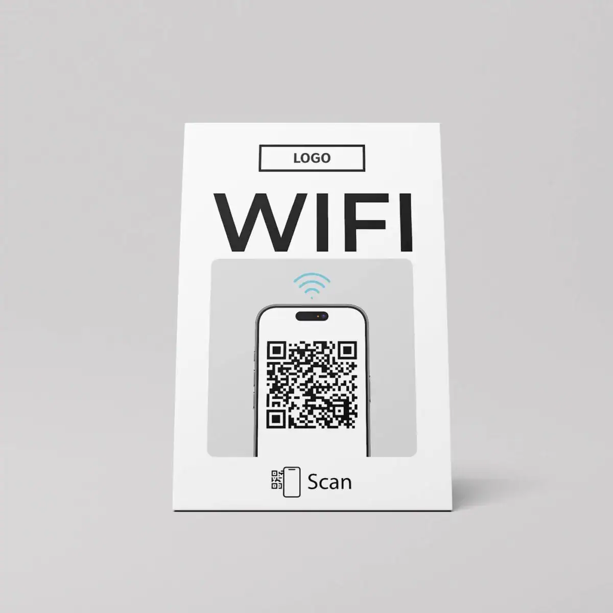 Supporto da tavolo “Clean” con WIFI Codice QR: design elegante, accesso Wi-Fi semplice
