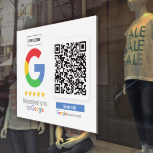 Beoordeel ons op Google Sticker Vierkant met Google review QR code