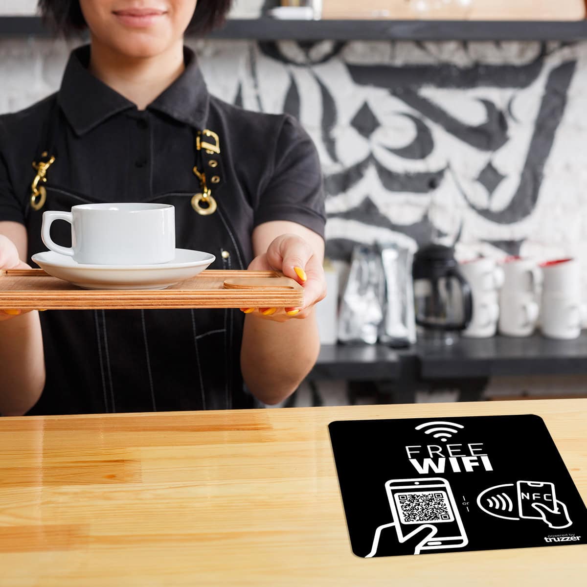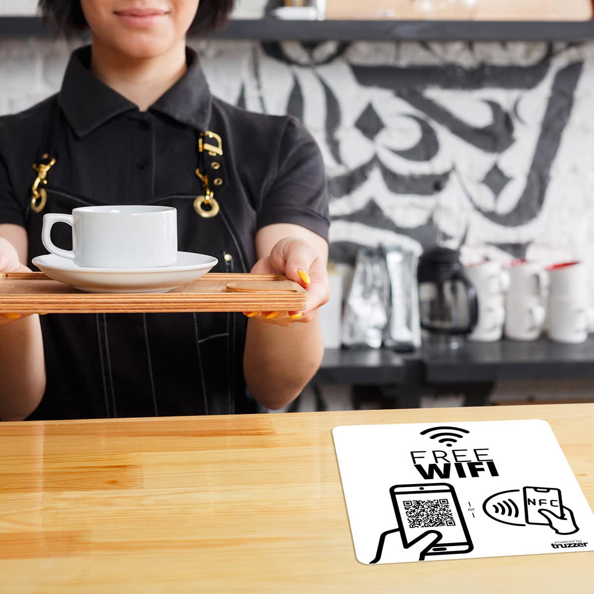 Det er også verdt å merke seg at Truzzer WIFI NFC-klistremerker inkluderer en alternativ QR-kode for kunder som ikke har NFC-aktiverte smarttelefoner. Dette sikrer at alle kunder kan få tilgang til informasjonen eller koble til WIFI-nettverket, uavhengig av hvilken type smarttelefon de har.
