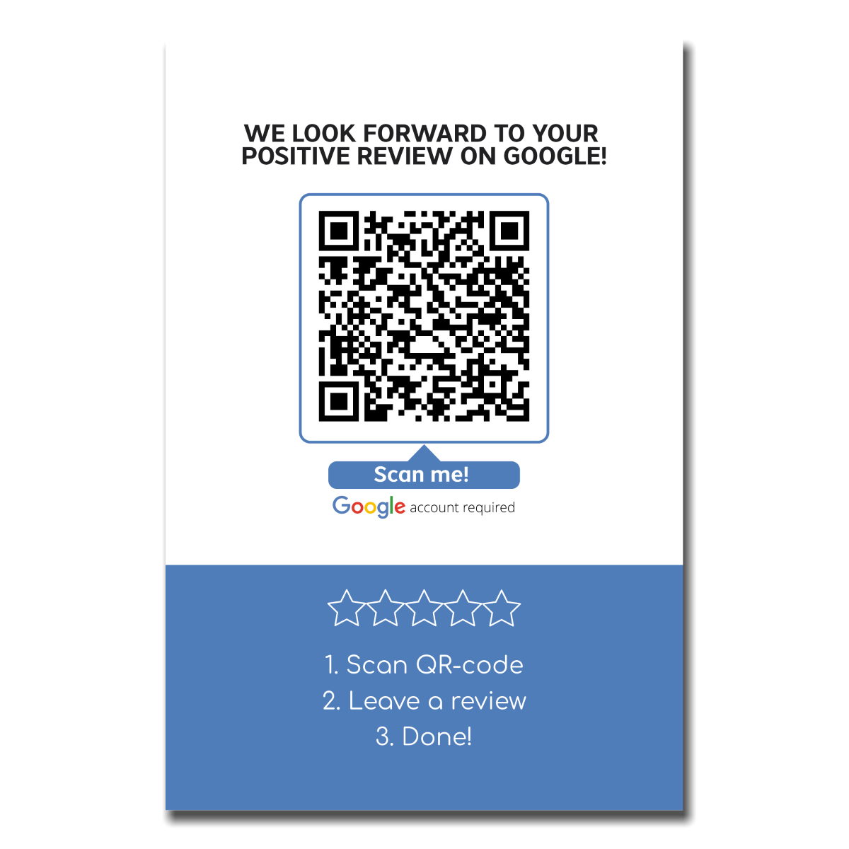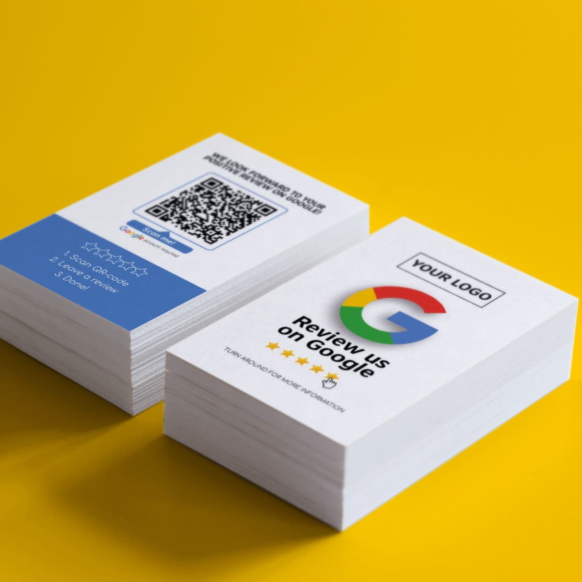 In a handy business card format, the “Reviewus on Google” business cards are ideal for anyone who travels a lot for work – e.g. for craftsmen and salespeople.