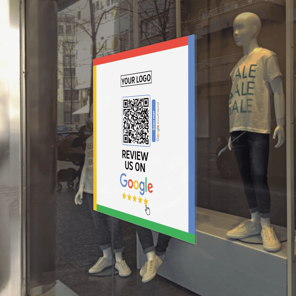 Self-adhesive, the Review us on Google decals / stickers blend into any business and stick to any flat surface.