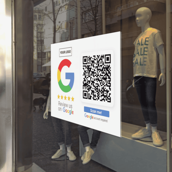 The self-adhesive Review us on Google decals / stickers blend in with any business and stick to any flat surface.