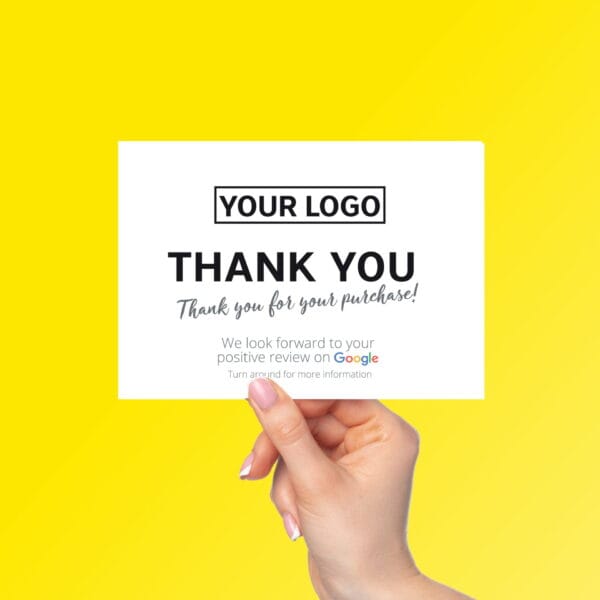 Du kan enkelt anpassa de rekommenderade tackkorten med QR-kod för Google-betyg med din logotyp och anpassa dem till ditt företag.