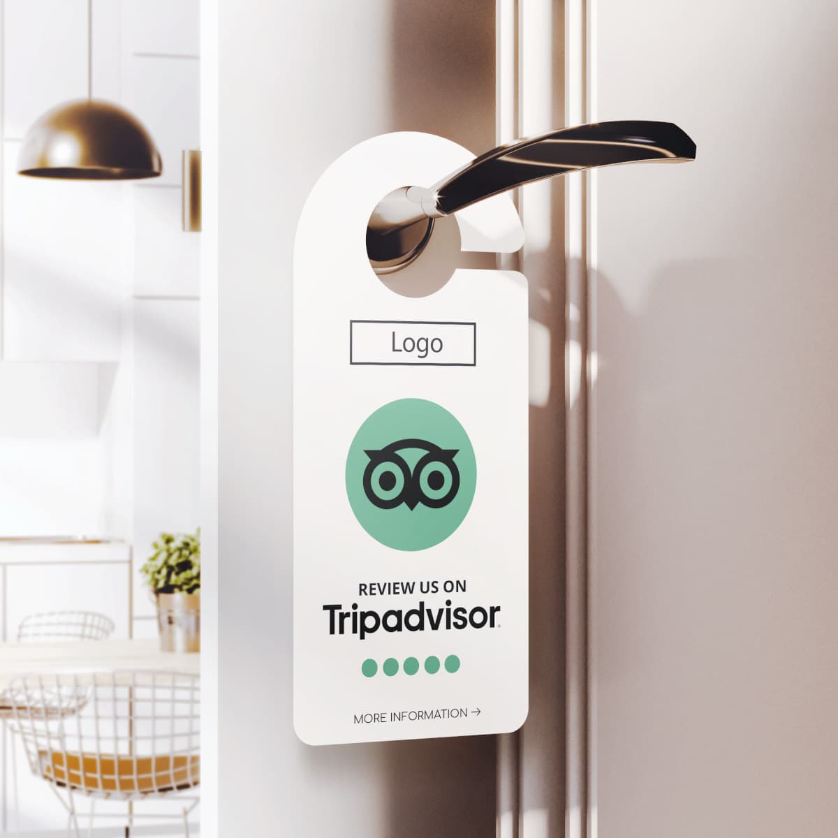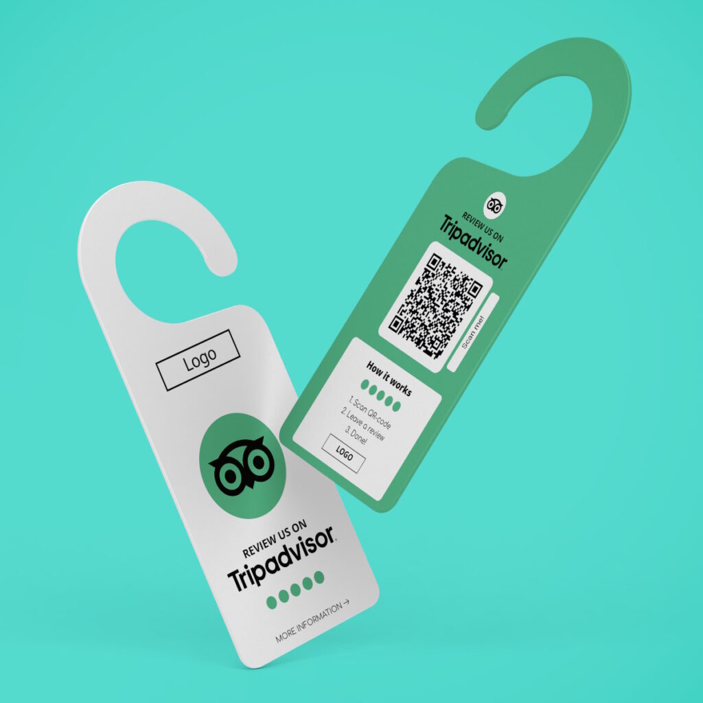 Review us on TripAdvisor hotel door hanger with TripAdvisor review QR code